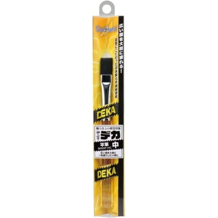 ゴッドハンド(GodHand) 神ふでデカ 平筆 中 GH-BRSDP-HIC ホビー用塗装筆 広い面を大胆に一気塗りしたいときに便利・筆幅が広いので、広い面を一回で一気に塗ることが可能です。・毛の量も多く、塗料の含みも抜群です。●広い面を大胆に塗れる、筆先が"デカい"神ふでシリーズ・従来の神ふでの良さはそのままに筆先を大きくしたことで、広い面もスケールの大きなモノも、一気に、大胆に塗装することができます。・塗料をよく含み、パレットとの往復が減るので広い面の塗装が一段と楽になります。●従来の神ふでの特長もしっかり持っています。・毛はコシの強さも考慮した純日本製の人工毛(PBT)・筆自体の製造も、人工毛専従の日本の筆職人が1本1本手作業で行うことで生み出されています・動物毛の筆は、溶剤に漬けると毛が傷み、ちぎれたりパサついたりしがちですが神ふでは溶剤に強いPBT毛なので傷みにくくなっています・筆先を留めているボンドも溶剤に強い物を使用しているので、良好な筆先を長く保つことができます・模型の筆塗りがしやすいコシに調整してあるので、一般的な化学繊維筆に比べて筆先がしなやかです・塗装の場面によって使い分けられるように筆先の形状を取り揃えました・筆先が短いと塗料の給水量が少なくなってしまい、すぐに塗料が乾いてしまう原因になります・そのため神ふでは描きやすさと吸水力のバランスを考えた筆先の長さの設計をしています・特殊加工のPBT毛により、筆の根元から曲がってしまった毛でも90℃以上のお湯で元の真っすぐな筆先に戻せるようになっています・適応塗料:水性◎/油性◎/ラッカー◎/ウレタン〇