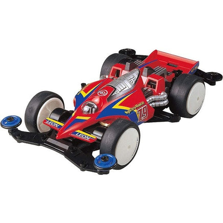タミヤ ミニ四駆特別企画商品 マイティミニ四駆 シンクロマスター Z9 VSシャーシ 95410 シンクロマスターZ9は、マンガ「未来レーサーブイツイン」の主人公のライバル、風間零音 (レオン)のマシン。マシンデザインは故・徳田ザウルス先生によるもの。未来派ムードたっぷりのボディは透明なブレインコアをクリアパーツで再現し、シャーシはVSを採用。