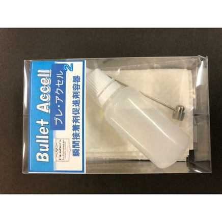 ブレ・アクセル2(瞬間接着剤促進剤容器) 瞬間接着剤硬化スプレーの揮発したガスを吹きかけることで硬化促進と白化をより防止します使用方法●ボトルにティッシユ等を入れ硬化スプレーを吹き液体を染み込ませます●揮発したガスのみ瞬間接着剤に吹きかけます