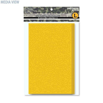 ハイキューパーツ CCMS3-L クラウド迷彩用マスキングシール3 L(3枚入) クラウド迷彩塗装用のカット済みマスキングシール本製品は、迷彩模様の塗装をするためのマスキングシールです。あらかじめ必要な形にカットされているので、手順通りに塗装していくことで迷彩塗装をすることができます。塗装の手順や、上手く使うポイントを記載した説明書付き。市販塗料を使用した迷彩の塗装例も紹介しています。169×270mm