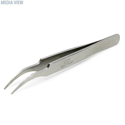 精密ピンセット(74047)に比べて、先端が約R1.5mmに丸められているのが特徴。先端が鋭くないのでつかむものにキズがつきにくく、安全性が高く扱いやすいピンセットです。材質は丈夫なステンレスSUS410。ヘアライン仕上げにタミヤロゴを彫刻しました。入り組んだ部分の作業に適したツル首タイプ。全長120mmのコンパクトサイズ。(ITEM 74108)ステンレスSUS410製、全長120mm